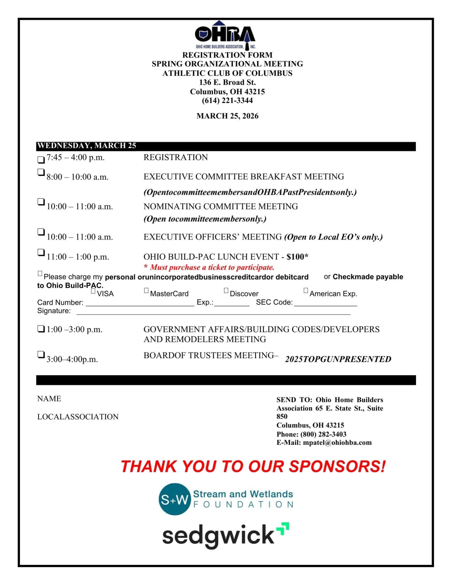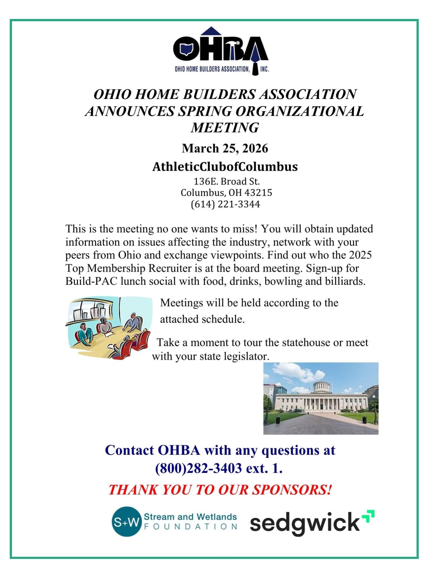 OHBA Spring Meeting and PAC Lunch with LG Candidate Rob McColley Back to News and Updates OHBA Spring Meeting and PAC Lunch with LG Candidate Rob McColley By Tod Bowen 3/10/2026 Images × Share × Email Facebook LinkedIn X Pinterest Powered By GrowthZone
